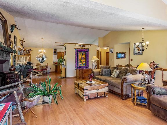 Wonderful Colorado property, so close to Conifer and Hwy.285, yet totally private! Raised ranch home with cedar siding and custom stonework. Tall pines surround with south facing 1.7 acres. Huge vaulted living room with giant bright windows, moss rock fireplace + cozy/efficient Jotul freestanding woodstove for warm winters. Open dining area with patio doors leading to private deck . No maintenance pergo flooring throughout ??? perfect for pets & kids! Tiled kitchen with ample custom oak cabinets. Big family room with another efficient woodstove - will heat all lower level. Walk-in main level is perfect for in-laws or teens. Fenced arena 57x113, plus well-built 2-stall barn 21x14 with tack/hay storage. Even a built-in chicken coop! Perfect home for wildlife and animal lovers~