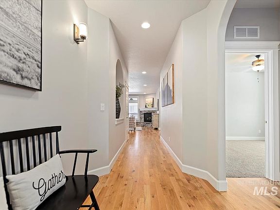 Welcome to the captivating charm of this home built by Ted Mason Signature Homes. Nestled within Hazelwood Village, relish in the lush parks, open spaces, community pool & clubhouse for gatherings & events. Step inside this remarkable entryway with an art niche to discover an intelligently designed open floor plan connecting the living areas. The kitchen is adorned with a central island, gas range/oven & spacious dining room. The split bedroom design offers a private master suite complete with new carpet, tall ceilings & windows overlooking the backyard. The master bathroom features an oversized double vanity & grand full walk-in tile shower. Storage is abundant with a large mudroom/laundry off the garage & pantry. The freshly stained wood fencing & covered patio provides a wonderful space for relaxation. Visit this gorgeous home today!