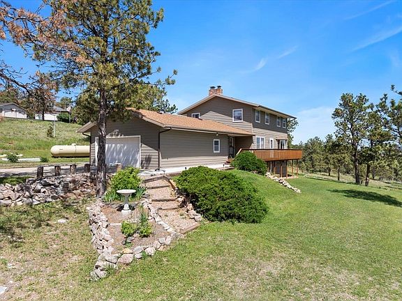 Listed by Sarah Peterka Keller Williams Realty-Black Hills Spearfish 605-661-2802. This lovely home sits on 5.49 acres of beautiful hills, giving you lots of privacy and amazing views. It's conveniently located just outside of Piedmont with an easy drive to jump on the interstate. It has its own well, septic and highspeed internet. Covenants allow shops on the property and up to 3 horses. The home features so many unique qualities including a cozy den with a 2-sided wood-burning fireplace and rustic wood beam accents. There's plenty of entertaining possibilities with a formal dining room, large living room, den, and bonus basement living space. The walkout basement has many opportunities to create the space you like. It includes a full bath and laundry. With an open living area and separate room there's plenty of room to add a 4th bedroom.