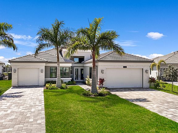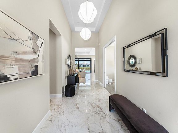 Welcome to luxury living in the highly sought-after Valencia Grand community. This Exquisite Crown Collection Napa Model is ideally situated on a premium lakefront lot and is impressively appointed with a wealth of premium upgrades throughout offering the ultimate in style, comfort, and convenience. Spanning over 3,100 square feet, this meticulously designed home features 4 spacious bedrooms each with a private en-suite, powder room, a club room, an open floor plan great room, chef's kitchen and dining area perfectly blending modern elegance with functionality.Step outside to your private saltwater pool and raised spa, complete with auto-fill, gas heating, and upgraded pavers, all overlooking serene lake views. Entertain in style with a fully equipped summer kitchen under a screened, covered patio, designed for effortless indoor-outdoor living. The interior of this home is adorned with marble floors in the main living areas and engineered wood flooring in the bedrooms. The gourmet kitchen boasts top-tier contemporary cabinetry, quartz countertops and backsplash, a GE Profile stainless steel appliance package with gas cooktop, wall oven, stacked showcase cabinetry, pull-out shelves, and a wine cooler ideal for culinary enthusiasts.