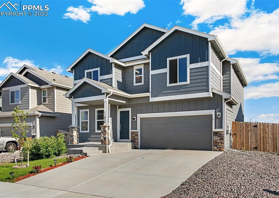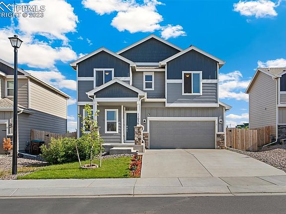 Why wait to build when you can buy this turnkey, Saint Aubyn Evans layout in Lorson Ranch, featuring 4 bedrooms on the second level, an additional bedroom in the basement and an enviable location, within walking distance to Grand Mountain School?! This home has it all, and then some! As you enter the home, your eyes will be drawn to the functional and open layout, beginning with an office/bonus room located to the side with a 1/2 bathroom conveniently tucked off of the room. Continue into the large living room that opens to the dining room and open concept kitchen. The gorgeous kitchen features stainless steel appliances, a pantry, and a large kitchen island. The dining room walks out to the large backyard that has been perfectly manicured. Imagine summer BBQs in your new, private backyard oasis! Upstairs, you will find 4 bedrooms, including a large Master Suite. The Master Suite adjoins with a 5-piece master bathroom, featuring beautiful ceramic tile, a double vanity, separate tub, separate shower, and large walk-in closet. Three additional large bedrooms, an oversized laundry room, and a 2nd full bathroom finish out the upper level. Continue down to the finished basement, that is complete with a bedroom, a full bathroom, a secondary living room, and a large storage room. Close to Mesa Ridge shopping/dining amenities, Peterson SFB, Schriever SFB, and Fort Carson. Easy access to Powers Blvd. Solar panels will be paid off at closing with a strong offer, which lowers your utility bills. Don't wait- this one won't last!