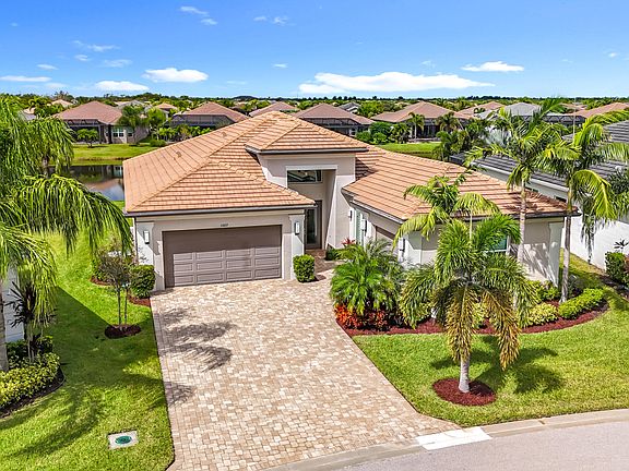 Lake Views Popular Caroline Model 2580 SF open floor plan features 2 bedrooms 2-1/2 bath den/game room/3rd bedroom 3 car garage many upgrades include cabinets quartz counter tops polished tile custom window treatments seamless glass shower enclosure in Master B Cat 5 window/doors monitored security system tile roof 8 ft garage doors extended paver driveway outdoor water oasis includes extended screen lanai kitchen & grill rough-in Valencia Cay located in Riverland a vibrant retirement community known for top tier amenities including resort pools, restaurants, River fresh Cafe, fitness center pickleball Arts & Culture Ctr City Parks The Town Center Publix grocery store recently opened The 35-acre ctr when complete will feature shops & rest aurants within golf cart car bicycle & walking distance from VC-Riverland Port St Lucie, Fl!