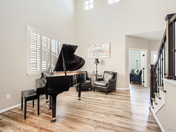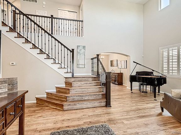 Welcome home to this updated gorgeous home in the much sought after Hearth neighborhood! This home has it all!!! It has a 3 car garage, 6 bedrooms, an office, 5 bathrooms and views of open space! The home is fully updated and move in ready for you to enjoy! On the main level you will find a large office with double French doors, a dining room, living/great room, eat-in kitchen with a large granite island, a mud/laundry room and bathroom. The entire main level has solid Hickory hardwood, as well as solid Hickory stairs going upstairs and the upstairs landing has hardwoods as well. The home has 4 bedrooms on the upper level, all with new carpet, Hunter Douglas blackout window coverings and new paint. Aside from the primary suite, there is a smaller suite (junior suite) that has a full bathroom attached, the other two bedrooms have a jack and jill bathroom attached. All with updated tile, lighting, paint and quartz countertops. The basement is finished and has a media area that is wired for a home theatre, as well as open areas for air hockey and other game tables and two other bedrooms and a bathroom. The front yard is landscaped and has a patio with views of open space where you might see various animals roaming the pasture. The backyard is beautiful with a large patio for entertaining, it's fully landscaped with lots of trees for privacy, as well as having a large grass area for playing in the yard!! The home feeds into Rock Canyon High School, Rocky Heights Middle School and Wildcat Mountain Elementary School. With this home you are able to access any or all of the 4 Highlands Ranch Recreation Centers which includes outdoor and indoor pools, tennis courts, gyms and much more! It's a very short walk to the Southridge Rec Center, open space with lots of trails, Paintbrush Park, and a shopping center which has a King Soopers, gas station, Starbucks and more! There is quick access to Park Meadows, the highway, Castle Pines and more!