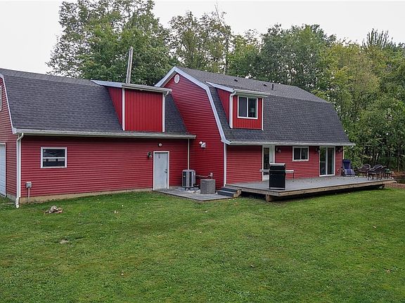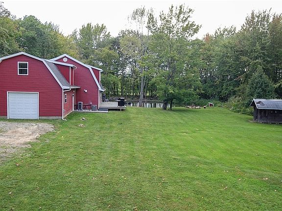 Totally rebuilt charming 4-bedroom 3-bathroom farmhouse with an additional suite above the 2-car garage located on over 5 beautiful acres! The iconic barn shaped county home was rebuilt from top to bottom with a large front porch and back deck that overlooks the stocked pond. Step inside the charming great room and see new LVT flooring throughout, new lighting and trim work. Notice the recently updated white kitchen with all new appliances and lots of cabinets space as well as a pantry. There is a first-floor laundry room and full bathroom as well as a first-floor bedroom or home office. Upstairs in the main home are three more bedrooms and two beautiful, updated bathrooms including a spacious master on suite.