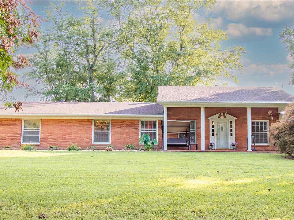 Here it is! Peaceful country living in this 2100+ sq ft HOME w/Mid Century Modern vibe underneath beautiful mature shade trees over this rolling 8.4 acres. So much to list, Double sided wood burning fireplace, Double ovens and breakfast area, Wide updated windows for the view, patio with built-in brick grill, and more. Don't forget the 3 large metal buildings for storage or fun, 2 on concrete and a pond. Forked Deer Connect internet Must see!! Comes with 1 yr Home Warranty.