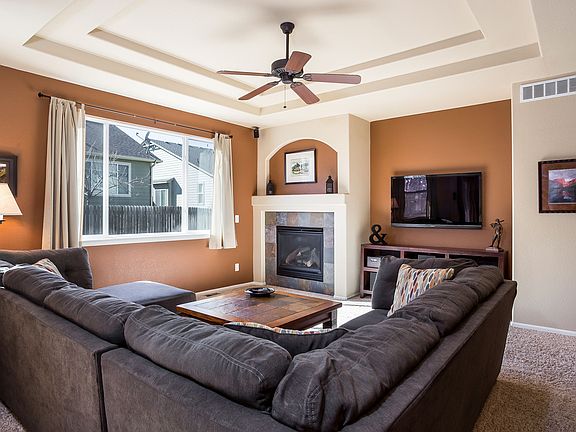Beautiful open concept ranch style home with 3 bedrooms plus office and 2.5 baths. Massive kitchen captures great flow with an abundance of cabinets, wood flooring. formal dining room & butler pantry. Living room has a gas fireplace, slate surround tile, large windows and surround sound wiring. Master suite with 5 piece bath, soaking tub and large walk-in closet. Oversized garage, covered back patio, solar panels and lush landscaping are just a few more features to this amazing property.