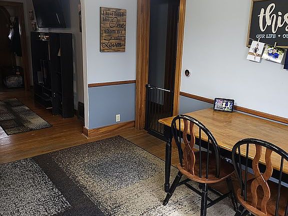 2 story brick home with attached deck and 2 detached garages. 4 bedrooms 2 1/2 bath. Partially finished basement with large rec room and kitchen. Large yard on corner lot 2 blocks from elementary school and 2 blocks from library and park.