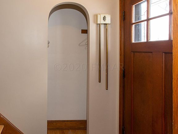 Historic Tudor Architecture in North Fargo. Enjoy the historic details including hardwood floors, glass door knobs, and solid wood doors to name a few. Main floor has wood burning fireplace, and renovated kitchen. Upstairs your will find two large bedrooms and renovated bathroom. Downstairs boasts a family room and 3/4 bath. Home also has newer windows, roof, and a brand new furnace. Enjoy fully fenced back yard with screened in porch. Plus alley access to two stall garage!