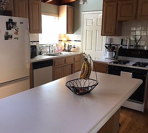 3 bdroom 2 bath, fenced back yard, small front, good street appeal. upstairs bedroom and bath is loft, 2 h/a units, mostly hardwoods, fireplace, bay window, refridge, stove (gas), and w/dryer included, security system avail., sprinkler system. No garage