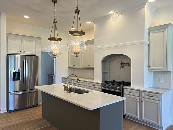 This exceptional home, situated on an expansive 0.76-acre lot, boasts a generous 2,800 square feet of living space with a marble surround fireplace! A must see! As you step inside, you'll be greeted by 2,359 square feet on the main level, designed with both elegance and practicality in mind. The main level features a thoughtfully crafted split bedroom plan, with three bedrooms and a bath on one side of the house, ensuring privacy and convenience for you and your guests. The heart of the home is the inviting vaulted ceiling great room, seamlessly open to the gourmet kitchen. Here, you'll find a stunning island and a dining room that overlooks the backyard. Step outside to discover a covered ceiling porch and an extended patio, ideal for entertaining or simply enjoying the serene surroundings. The kitchen is a chef's dream, complete with a pantry featuring exquisite butcherblock cabinets. Your three-car side entry garage offers ample room for your vehicles and storage.