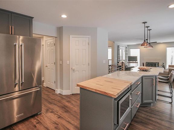Agents-see updated agent remarks. Fabulously updated open ranch w/brick front & side entry garage on landscaped cul-de-sac lot backing to trees! Jaw-dropping newer kitchen w/stainless including exhaust hood,marble counters/island w/built-in butcher block,recessed & pendant lighting,subway tile back-splash to ceiling! The kitchen opens to a hearth-room w/gas fireplace & custom open stairway provides view into dining & great rooms w/recessed lights,updated ceiling fans & extra tall ceiling height. A wall of windows provides excellent natural light & views from a large covered deck which can be accessed from the hearth-room or master bedroom. The master suite is perfectly sized including his/her vanities, soaking tub & enormous w-in closet. The other two main flr bedrooms share a J&J bath. Main flr laundry & updated half bath! 2700+sf living space w/finished walk-out LL w/full bath & windows low enough for an additional bedroom,tons of storage,workshop w/separate entrance & covered patio!