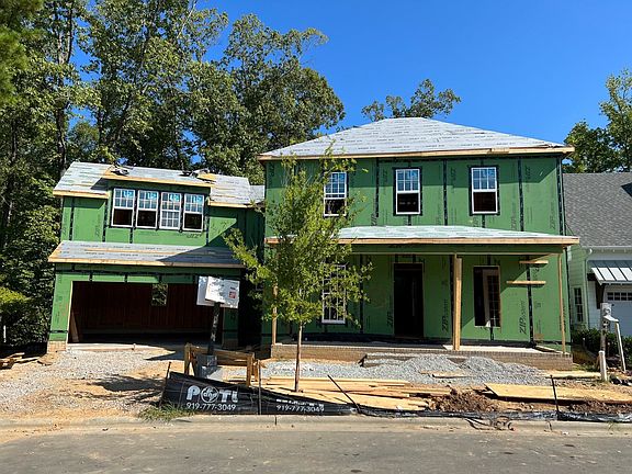 Ready Q3 2023! The "Trinity" is by local builder Homes By Dickerson. Located on a premium, treelined private, corner lot! Enjoy wooded views from two outdoor porches. This home boasts an open 1st floor layout with a 1st floor owner's suite. Interior will feature site-finished hardwoods, farmhouse sink, built-ins, quartz countertops and many other custom finishes throughout. Community is conveniently located to Duke, Southpoint, RDU & RTP! Ask about $15,000* August "use as you choose" incentive. Selections have already been made and cannot be changed.