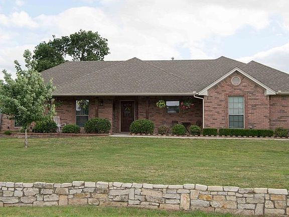 Search property address for video tour. Peace and tranquility await. Well cared for open concept 4 bed 2 bath 4th bed used as office playroom flex space. Kitchen features 42in custom cabinets, walk in pantry, upgraded fixtures, island, granite and SS appliances. Oversize utility room with laundry access from master closet. An invisible fence and creek border the nearly 1.25 acre property. One of the largest lots in subdivision offers plenty of space for pets and kids alike. Enjoy picturesque sunsets from the large paver patio or a rocking chair from the large covered front porch. Relax on the bench swing or a hammock in the shade of your peach and pear trees. Grade A Northwest ISD schools are only minutes away.