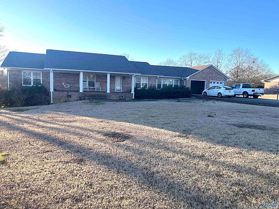 FULL BRICK HOME BASEMENT RANCHER WITH 3 CAR GARAGE SITUATED ON 1.41 ACRE CORNER LOT, 3 BEDROOMS, 2 1/2 BATHROOMS WITH APPROX 2500 SQFT, INVITING FRONT PORCH AND BACK PORCH, WITH EXTRA COVERED PORCH AREA, ALL ROOMS ARE LARGE WITH EXTRA STORAGE, ROOF LESS THAN 2 YEARS OLD, HVAC SYSTEMS BOTH LESS THAN 3 YEARS OLD, HARDWOOD FLOORS, LARGE PANTRY OFF THE LAUNDRYROOM, SELLERS ARE SELLING " AS-IS" CONV OR CASH ONLY TERMITE BOND WITH SAND MOUNTAIN PEST