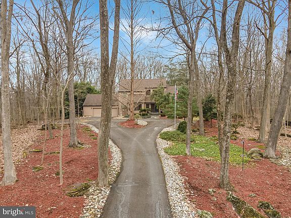 This uniquely stylish home is set in an exceptionally beautiful location. If you wish to assure your peace and quiet - your investment is secured. Camp Trail Road is just a few minutes' drive from thousands of acres of state park land with Lake Nockamixon State Park five minutes away and Lake Towhee State Park and the State Game Lands close by. This woodland retreat is set on ten lovely acres accessed by a curving private road shared by several attractive homes. In addition, a long circular driveway shields your view of that private drive. The surrounding whispering wood is your exclusive domain. The home's graceful contemporary exterior is wood sided and, in the rear, a 630 square foot deck is wonderful for entertaining or simply relaxing outdoors. Once inside, the design is uniquely sophisticated, from the dramatic two story foyer to the spacious great room in the center of the home. A stone wall fireplace, exposed beams, vaulted ceiling with skylights, and an attractive ceiling fan and recessed lighting create a light filled airy space. A glass door with craftsman detail opens to the deck allowing you to bring the outside in. The kitchen is sleek, modern and handsome with extensive flat panel cabinetry, new cabinet front subzero refrigerator, new Jennaire appliances and stone counter tops and backsplash. The large center island and casual dining area allows you to face your guests when cooking. Just off of the kitchen is the half bath and laundry room. In addition there is a beautiful dining room with a wall of windows. The beautiful primary bedroom suite completes the main floor. Bold clean lines is the aesthetic here. A stunning master bath with freestanding tub under the skylights, oversized glass enclosed shower with custom tile, dual sinks and furniture vanity along with two walk in closets with organizers will take your breath away. The second floor is accessed by an open stairway to the large open landing, overlooking the great room, which currently serves as an office. Down the hall are two spacious bedrooms which share a well-appointed bath. The walk out partially finished basement is delightful. It's currently set up as an in-law suite complete with full bath and kitchenette. Imagine the kitchenette as a bar and an alternative set-up of game room and theater - it's fully flexible 800+ sq ft of finished open space and additional ample storage! The two car oversized garage features a workroom area with stairs leading to the second floor storage space. Additional features include: Central vac, newer hot water heater and dry, covered, storage space under the deck. No HOA for this beautiful enclave of homes! Just $400 a year for neighbor cooperative maintenance of the road and snow plowing. Half an hour to the turnpike and I78 make this home a wonderful choice for vacation residence. But if it's full time serenity that you are after there is no equal to this remarkable home.