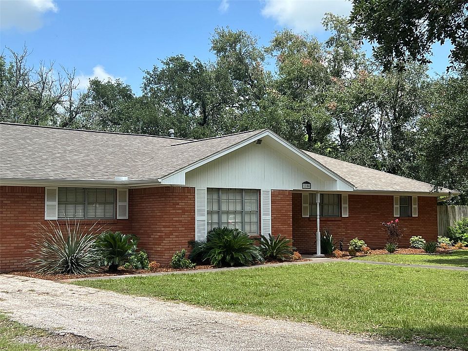 With 1945 +/- square feet of living area and sitting on over a half acre lot in desirable neighborhood, this brick, 3 bedrooms, 2 bath home may be just what you are looking for. Notice the beautiful hardwood floors as you enter through the front door. Large living/dining area with tile and hardwood flooring, wonderfully sized kitchen with tile flooring, solid surface counters and raised panel cabinetry, den with tile floors, built-ins and french doors to patio and backyard. Great size guest bedrooms with new laminate flooring. Large guest bath with two linen closets, new tub/shower surround and updated fixtures. Primary ensuite bath with large walk-in shower and designer vanity. Freshly painted interior, foundation repair with lifetime warranty, composition roof installed 2021, recent central air & heat unit and new windows to be installed soon.