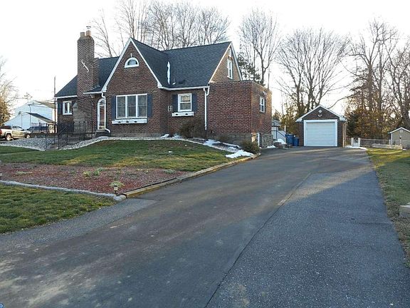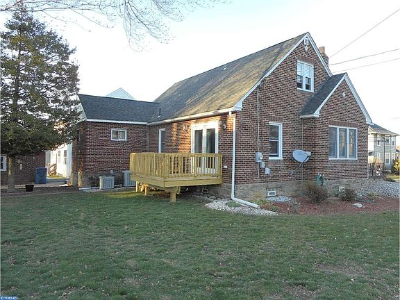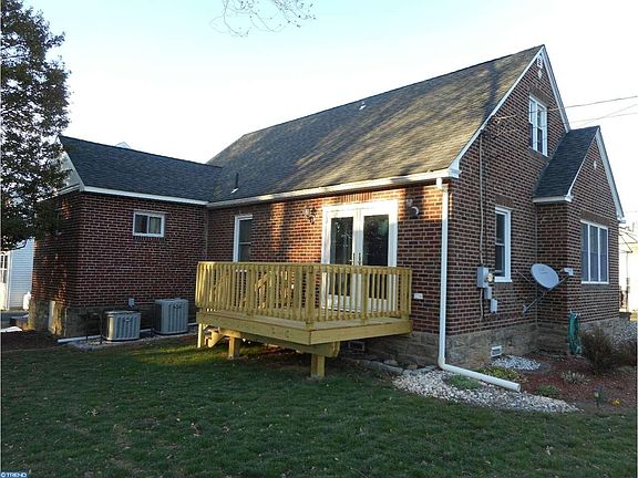 Expanded 4 bedroom 3 full bath brick Cape. Master bedroom on main level with French door to brand new rear deck. Large double closet with glass doors. Beautiful completely remodeled tiled hall bath with double vanity and large tiled shower. Heated tile floor. Large kitchen with plenty of light oak cabinets, built in dishwasher & microwave. Brand new glass top oven. Plenty of room for kitchen table and side entry from driveway. Formal dining room with beautiful hardwood flooring. Chair rail & crown molding. Large living room with hardwood flooring, decorative fireplace and custom windows. Unique & stunning rounded top front entry door. Den off kitchen great for TV room or office area. 2nd bedroom on main level with vaulted ceiling and double closet. Upstairs has nice size hallway with oversized cedar hall closet. Oversized 3rd bedroom with built in dressers. Good size hall bath with double vanity & Tub. New bathroom floor just installed. 4th bedroom at other end of hallway. Finished basement is waterproofed and is walk up with exit to driveway area. Large 19 x 18 finished area is currently used as bedroom and there is full bath with shower. The unfinished portion has washer, dryer area and plenty of room left for storage or workshop area. Entire basement was waterproofed and could be very large family room. House has all replacement windows. There are 2 central air units. One for main level and one for 2nd floor. Large driveway leads to detached 1 car brick garage. Very nice home. Well built and well maintained. Newer 3 dimensional roofing. Walk to Cornwells Charter and Holy Ghost Prep. Minutes from Cornwells train station and I-95. Great location in nice neighborhood. Will not be disappointed with size and quality of this home.