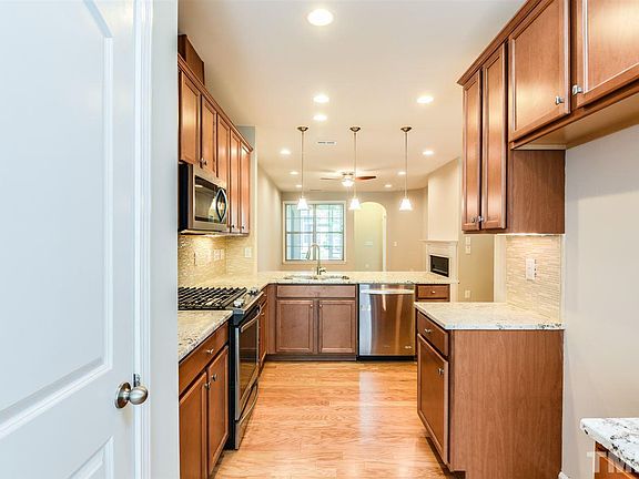 Built in 2014, this Cary two-story offers granite kitchen countertops, hardwood flooring, a fireplace, and a one-car garage. Upgraded features include fresh interior paint.