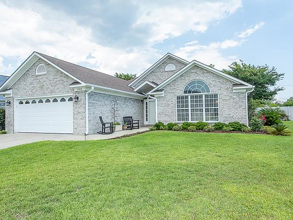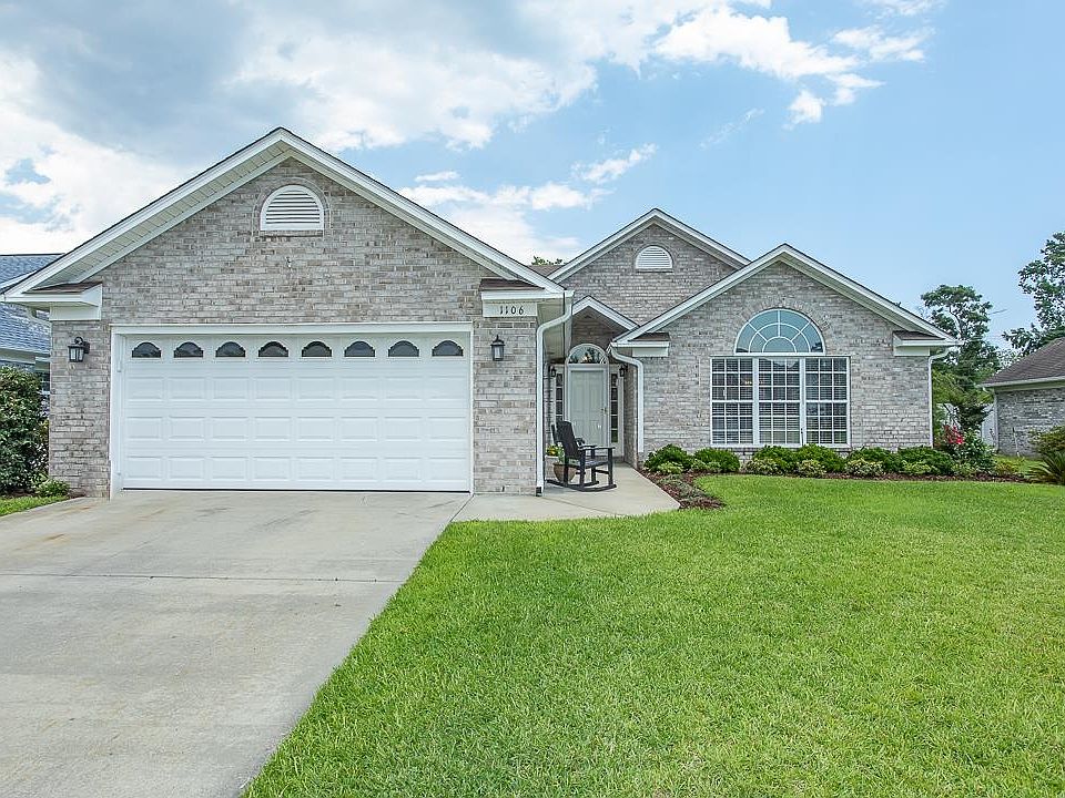 The Tilghman Forest community opens itself to your ownership as you relocate into this all-brick home with a two-car garage. Bright and open floor plan provides one-level living, cathedral ceilings in the Living Room and Family Room. The primary bedroom is enhanced with a tray ceiling and a bathroom featuring both a garden tub and a walk-in shower. Such a lovingly cared for and well-maintained property. If maintenance issues are discovered, Seller remedies as quickly as possible. This location is at such a premium. East of Hwy 17, golf cart friendly, motorcycle friendly and a sense of real community for Tilghman Forest. Super short distance to elementary school, shopping, restaurants, banking and churches.... literally down the street for all! Oh my, do not forget this house location is a golf cart ride to the ocean. This property meets so very many of the hot button items for living at the beach. The rear yard is privacy protected by a concrete wall, yet the feeling is open and spacious on this 0.22 acre lot. This active community includes a clubhouse offering social activities throughout the year and an outdoor pool for the sun and swimming enthusiast.