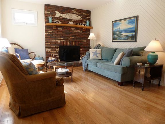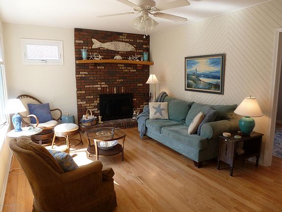 ATTRACTIVE 2 BEDROOM, MOVE-IN READY COTTAGE BY THE SEASHORE WITH 1 CAR GARAGE AWAITS YOUR MOST PARTICULAR BUYERS! The interior includes gleaming wood floors, an ample size, sunny living room with fireplace, bright EIK with vaulted ceiling & beams and totally remodeled (2015) bathroom with laundry area. The nice size master bedroom has sliding doors to the back deck. A second bedroom includes separate sitting room & enclosed sun porch used as an office. Security system too. The backyard with an outdoor shower, lawn area, deck with removable covered gazebo & patio area allow a perfect spot for relaxing, entertaining & those summertime barbeques! This home is truly move-in ready, freshly painted, new roof, new refrig, newer bathroom, HWH & W/D! APPROX 1 MILE TO BEACH & THE PRICE IS RIGHT!