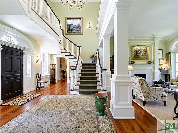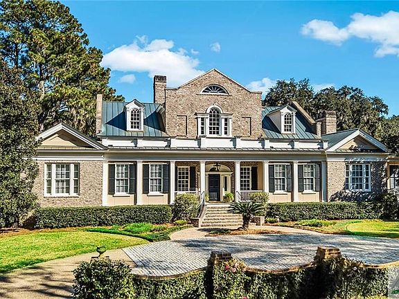 This Federal style home is located in the prestigious The Ford Field & River Club. Built in 2004, this elegant home has a main floor master bedroom/sitting room, two large walkin closets and a fireplace. As you enter the foyer, breathtaking views of the 200 year old live oaks will lead you into the living room dominated by three floor to ceiling glass doors which overlook the 80 foot porch. An English style gourmet kitchen with top of the line appliances, walk in pantry and wet bar await that special chef. A spacious study with detailed pecky cypress walls and coffered ceiling overlooks the formal garden and the preserve. On the second level, the hallway will lead you to two large bedrooms, and a large bathroom/workout room. Your guests will enjoy their stay in the two car garage guest house. The large entertainment area has a kitchen and pool table . The spacious bedroom will accommodate two queen beds and has a full bath. A membership to Ford Plantation is required.