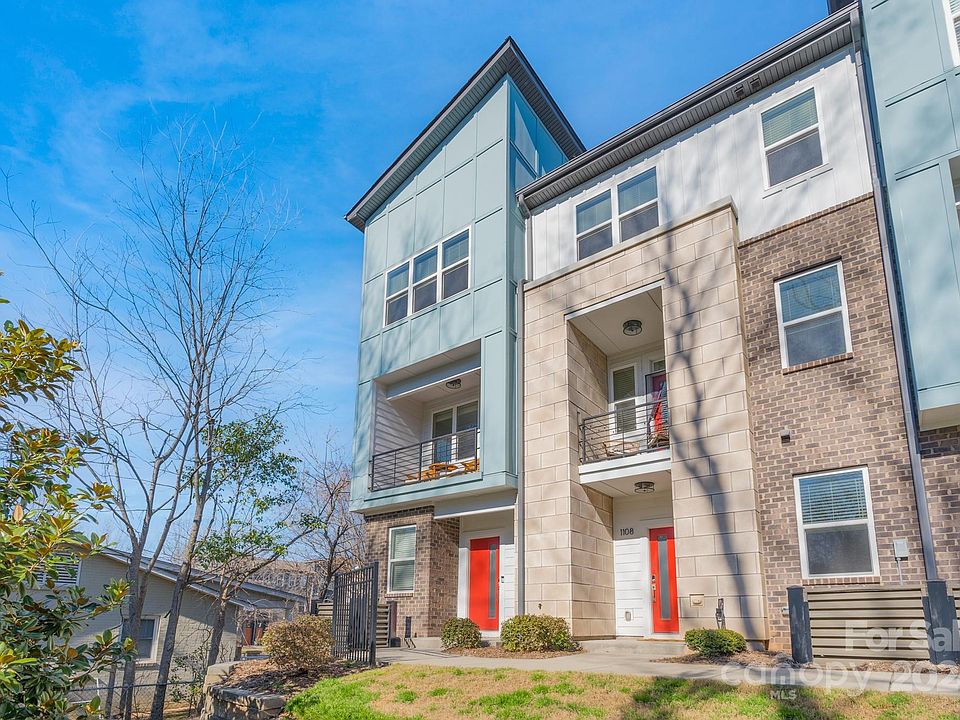 Gorgeous like new Townhouse in NoDa! A dream Kitchen on the main level with large center Island, beautiful counters, appliances and lots of sunlight. Meander past the built-in bar to a comfy den with lots of windows and a tree top view. Enjoy coffee or a cocktail from the covered den balcony. The upper level gives you a cozy Primary bedroom & large bathroom, plus plenty of closet space. A secondary bedroom is tucked away and has a private full bathroom.