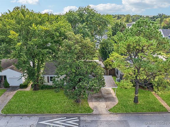 Discover this charming one-story bungalow nestled in the highly sought-after Brookside neighborhood of Midtown Tulsa. Featuring a one-story floor plan, new energy-efficient windows and beautiful hardwood floors throughout. The front living room seamlessly opens to a chef’s kitchen equipped with updated appliances, a gas cooktop, and a central island with seating—perfect for both everyday meals and entertaining. Enjoy a dedicated formal dining area and a spacious bonus second living room with direct access to the backyard patio, ideal for relaxing or hosting guests. Two generous size bedrooms, each with continued hard wood floors, are accompanied by an updated hall bathroom. Situated on a large 0.20-acre lot, the backyard patio offers a private space for outdoor enjoyment. One car garage and an exterior carport. Prime location just blocks from Brookside’s renowned restaurants, shopping, and entertainment, as well as close proximity to Tulsa’s award-winning Gathering Place park and the scenic River Parks Trails. Located within the coveted Eliot Elementary school district, this home embodies the Midtown Tulsa lifestyle at its finest