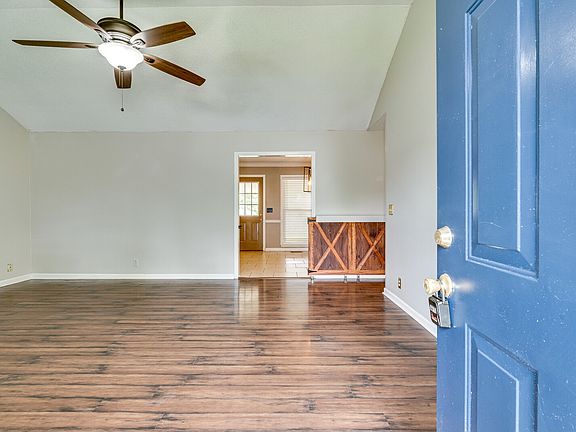 Charming 3 bedroom 2 bathroom home on a quiet cul-de-sac in a fantastic neighborhood! The adorable home welcomes you to a cozy living room boasting soaring ceilings and a wood-burning fireplace. A barndoor-style gate between the kitchen and living space is great for families with dogs. The kitchen boasts tons of cabinets and an eat-in dining room with access to the covered back patio for grilling. Enjoy the convenience of a spacious laundry room with overhead cabinet storage and additional attic storage. At the end of the hallway are all 3 bedrooms and a hallway bathroom with new vanity. The master suite includes high ceilings and an en-suite bathroom with a walk-in closet. Fully fenced-in yard and a long driveway with a parking pad! The roof is 4 years old and the home has a new HVAC!