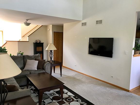 Large three bedroom, two full, two half bath duplex on a quiet street. No neighbors in front or behind. Large master bedroom with newly remodeled master bath and large walk-in closet. Hardwood and tile floors, updated bathrooms, two story living room with custom windows and fireplace. Full finished basement with bathroom and wet bar. Tons of storage throughout! Extra large loft built over two car garage for extra storage. Fenced in yard with garden, rain barrel and compost bin. Entire house wired with gigabit Ethernet for network and internet, mounted flat screens in living room and basement with in wall cabling. New water softener and water heater, reverse osmosis system for clean drinking water. Some furniture and household items (lawn mower, snow blower, etc.) are negotiable. Call or text 815-693-9212.