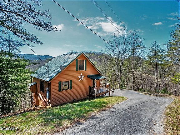 What A View---absolutely gorgeous highly desirable view of the Smoky Mountains!! Fantastic location--just two miles off the Parkway at the southern end of Pigeon Forge!! This three-level cabin has one bedroom, two full baths plus 2 bonus rooms that can serve as additional sleeping rooms--could easily accommodate 6 guests! The main floor consists of a spacious living/dining area with lots of windows to take in the wonderful view and a gas fireplace. The kitchen, full bathroom and the bedroom are also on the main floor. Bonus rooms are the semi-private loft and the finished lower level--both could be used as extra sleeping spaces or recreation rooms. The lower level features a full bath, utility room, walkout private terrace and storage closet under the stairs. There is approximately 350 square feet of partially covered decking from which to take in the beautiful mountain views and wildlife. "End of the road" privacy and relaxation close to all the attractions, entertainment, and dining, yet seems worlds away from the hustle and bustle providing for solitude and reflection. A few furniture items remain with the cabin--three beds, two small chests, three bedside tables, four dining chairs and two living room chairs. Home has been family owned since 2009 and has not been on any overnight rental programs during that time. It is a great find for someone looking for either a permanent residence or the perfect get-a-way vacation home. Discerning investors looking to generate revenue will be delighted, as Short-Term Rental opportunity is permitted.