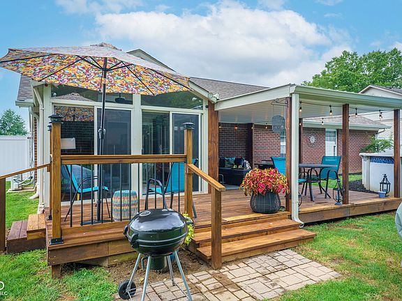 A True Gem! Step into this beautifully updated 1,700+ SF brick ranch and feel right at home. The open kitchen is a culinary dream with stylish refaced cabinetry, sleek new countertops, a spacious pantry, center island, elegant glass tile backsplash, and black stainless steel appliances that stay with the home. Recent upgrades abound: a new roof, gutters, drainage system, interior paint, flooring, and lighting enhance the home's appeal. Plus, a recent addition of energy-efficient cellulose insulation ensures comfort year-round. Enjoy serene garden views from your 4-season sunroom featuring its own mini-split for heat/air, or relax on the covered deck beside the inviting pool in the fully fenced backyard. With a pristine lawn and vibrant landscaping, this one-level haven is a real standout! The finished garage offers extra storage and convenient pull-down attic access. Situated in the sought-after Rooker Run neighborhood, this charming residence offers a quick commute to Indy, Greenwood, or Bloomington. With no HOA, this home is a must-see!
