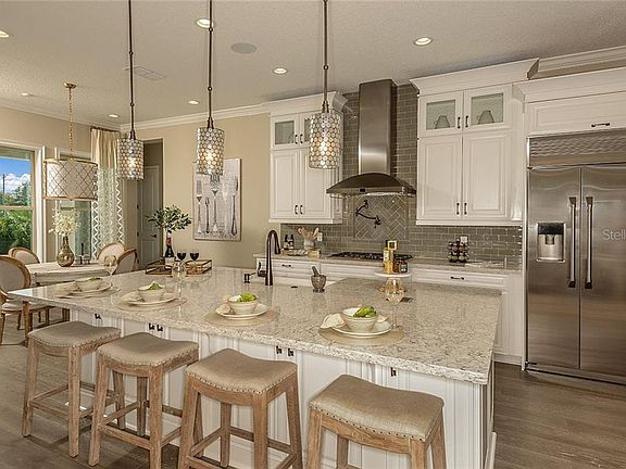 - Interior Features: Eating Space In Kitchen, Split Bedroom, Walk-In Closet(s), Crown Molding, Kitchen/Family Room Combo, Solid Surface Counters, Built in Features, Wet Bar, Tray Ceiling(s)