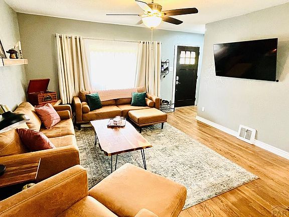 Cutie alert!! This adorable rancher is ready for a new owner. From the moment you pull up you are greeted by the nice green lawn with flower gardens. Then walking in you have a large open living room/kitchen with new paint, hardwood floors, custom kitchen cabinets, new countertops with a modern backsplash. There is a ton of light for your plants!! On the main level you also have 2 huge bedrooms with large closets and an updated bathroom. The basement has another big bonus room (a non-conforming bedroom, hobby room, game room or family room). The back yard is fully fenced with lush green grass! This home was completely redone from top to bottom 2 years ago~ new roof, new plumbing & sewer, updated electrical, new furnace and central AC, new windows, new doors and hardware. Walking distance to the Colorado State Fair and many other amenities. This home has something for everyone!