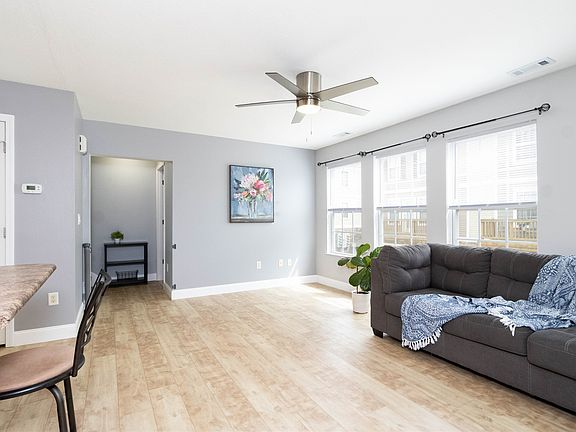 Looking for townhome living with privacy and green space! This end unit townhome is for you! This unit is not attached to neighbors behind so it has a large deck surrounded by trees and nature. You will love the open concept layout with gorgeous newer flooring on main level. Kitchen has stainless steel appliances, kitchen island, and large pantry closet. Spacious living room area with plenty of windows for nice lighting. This unit also has 2 full bathrooms and a 2nd floor laundry room near the bedrooms. Need parking? There is a 2 car attached garage and this unit is located right next to the extra parking area for guests. All appliances stay, even the washer and dryer. Call today to make this Home Sweet Home!