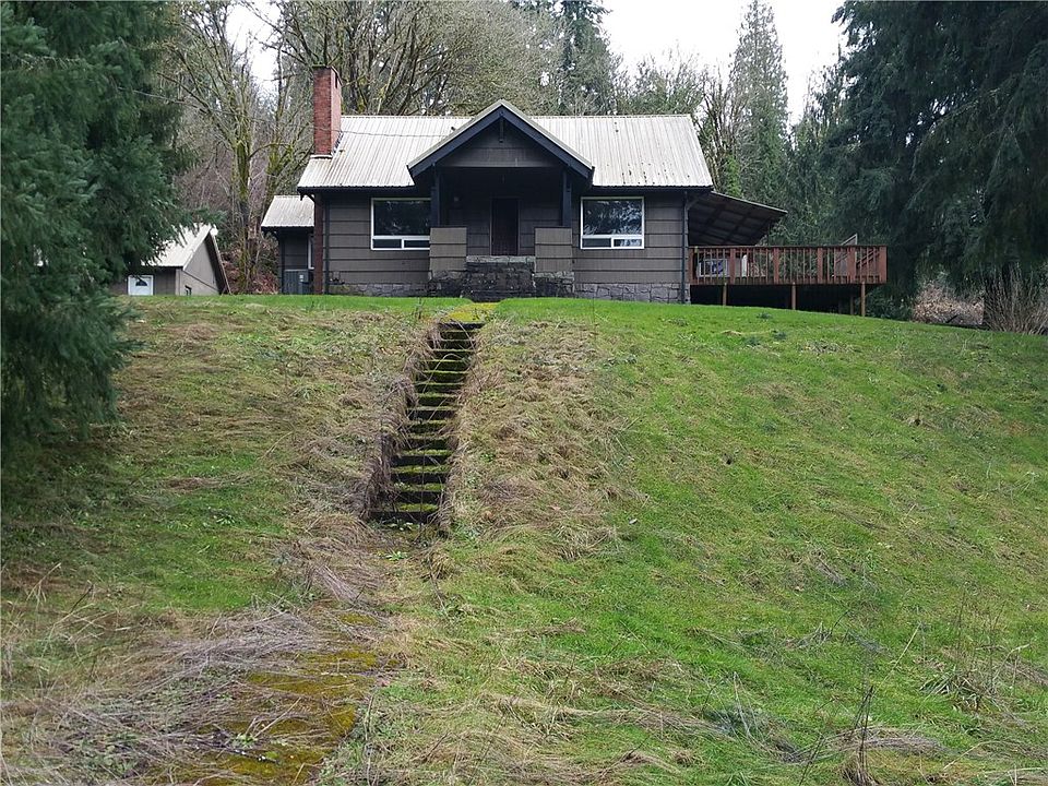 Great home on 3.21 acres w/ huge metal shop seperate parcel & address 1108 Fishpond Rd, few small out bdgs home w/ deck for entertaining, territorial view, hardwood floors, great gourmet kitchen, rock fireplace, large bathroom on the main floor. and 2 spacious bedrooms. This home has tons of character located close to interstate in Kelso, WA, with over 1800 square feet. Charming and tons of room to grow. Property has easement that runs thru it to a 1 acre parcel of land.