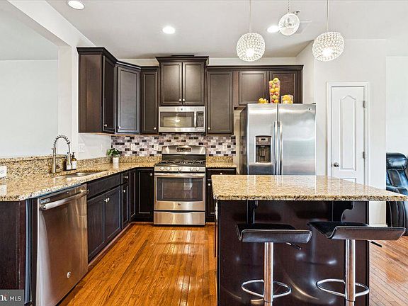 Experience comfort and convenience in this well-appointed townhome, ideally located in the Catoctin Ridge community in the City of Frederick. Built in 2015, this brick-front home offers over 2,200 square feet of living space, enhanced by a 4-foot bump-out on all three levels. The oversized kitchen is a standout feature, complete with granite countertops, 42-inch cabinets, a gas stove, and plenty of room for cooking and gathering. Wood floors and tall ceilings elevate the main level, while the upper level boasts a spacious primary suite with an oversized walk-in closet and a conveniently located laundry room. A newly added vinyl deck provides the perfect outdoor retreat, and with gas heat and a one-car garage, comfort and efficiency come standard. Situated close to shopping and major commuter routes (270/70/15), this home is a fantastic blend of space, style, and accessibility.