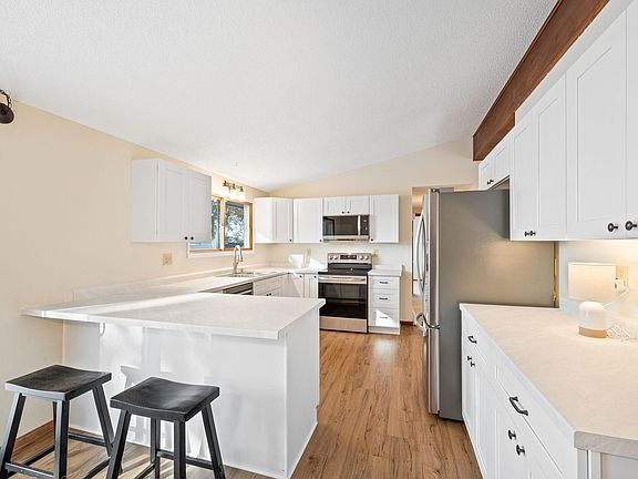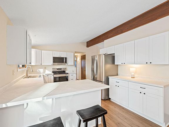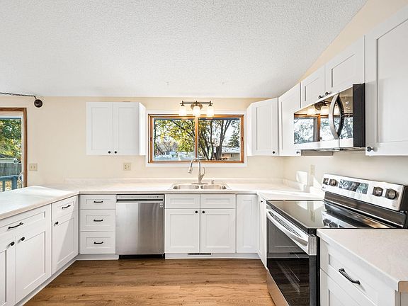 Beautifully remodeled 3 bed, 2 bath split level home nestled in mature cul-de-sac. Home features vaulted main level, brand new white kitchen w/soft close cabinets, all new SS appliances, updated lighting and new flooring throughout. Main level has 2 bedrooms and updated full bath. Lower level is finished w/family room w/woodburning fireplace, bedroom, 3/4 bath, and access to garage. Quiet backyard to relax and play, 10'x20' shed for extra storage. Home has brand new furnace, A/C, water heater and water softener. Move in ready and perfectly located in the heart of Buffalo.