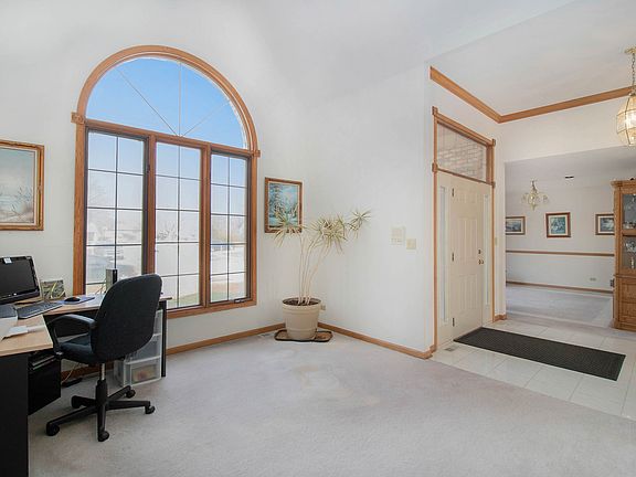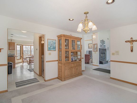 Nicely maintained two story 4 bedroom/2.1 bath home with formal dining room and living room. Home has double sided fireplace with volume ceilings and abundant windows. Handy eat in kitchen with planning desk but also has formal dining room. There are four bedrooms upstairs including a huge master suite including Jacuzzi tub and great walk-in closet. Laundry is currently in basement but home is equipped for first floor laundry off garage entrance. Home has three car tandem heated garage with drive thru door at back of house. Basement is partially finished with kitchen and rec areas.