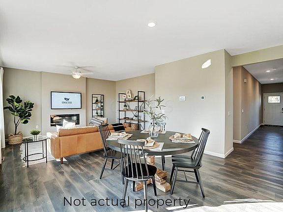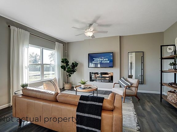 If traditional with modern touches is your style, look no further. Den/flex room is the ideal in-home office. The spacious great room with 9 ft ceilings is open to a generous kitchen with ample storage and counter space. Cozy fireplace in the great room is both the ideal place to gather as well as a decorative focal point. The oversized kitchen island, overlooking the great room allows for extra seating and the guartz counters, cabinet hardware & wood plank flooring add to the overall appeal. Unique turnback staircase leads to 4 large bedrooms! Other features include full basement (plumbed for bath), hard surface flooring in main living areas and exterior upgrades such as stone accents and a lovely concrete patio!