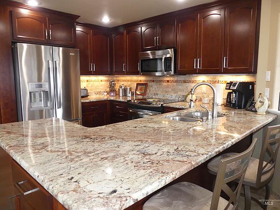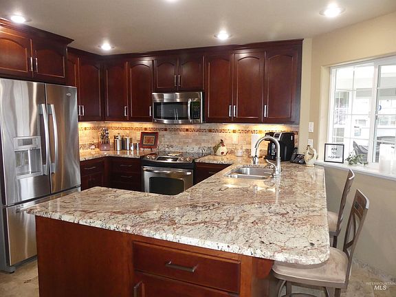 Beautiful 4 bed 2 bath Lewiston Orchards home. Remodeled kitchen and master bedroom with additions going out to covered decks that greatly increase living space. Custom kitchen, granite counters, custom cabinets and tile in bath, vinyl windows, stamped concrete, sprinkler system, nicely landscaped, gas stove, view from the decks, gazebo, extra work room.