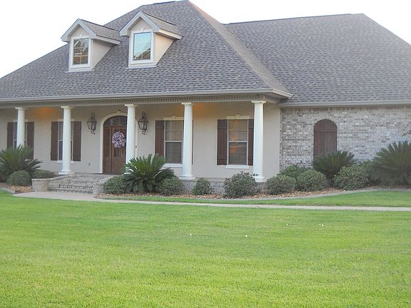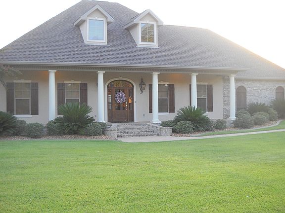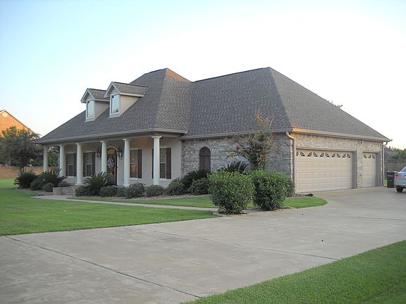 Custom home with triple crown molding and granite counter tops. Columns inside and out. Vaulted and tray ceilings with rope lighting. Custom light fixtures and ceiling fans. 10 ft ceilings through out home. Has large 2 car garage and separate golf cart parking. Has 30 yr architectural shingles.
