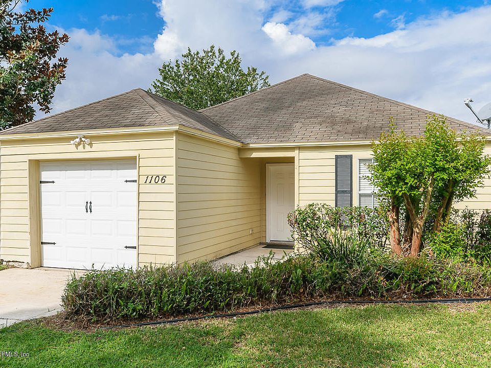 Lots of updates in this move-in ready home! New A/C in 2016, new sinks and toilets, new backyard fence, and new paint inside the home. Featuring vaulted ceilings and professionally cleaned tile, with wood laminate in the bedrooms and living room. Master bath contains his and her walk-in closets. This former model home boasts a large backyard, 1 car garage and a sprinkler system. Kitchen has plenty of storage and all appliances stay! All windows and french doors are being replaced. Home is a great value and centrally located to get to the beaches or downtown. Won't last long!