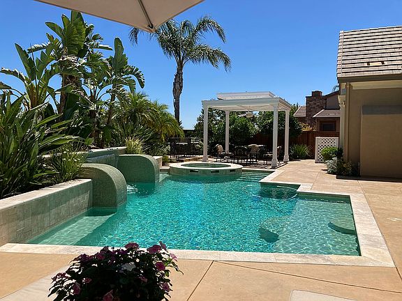 Amazing French country style home located in the highly sought-after Bordeaux Village “Trilogy at the Vineyards” 55+ Community. Resort style living at its best includes amazing heated saltwater pool and spa surrounded in lush tropical landscaping with beautiful Queen Palm trees, Sego Palms, Bird of Paradise, lemon and orange trees. This home has one of the most imaginative floor plans containing a number of unique and distinctive elements with a curved entryway hall sweeping past office and circular dining room with stunning view from the semi-circular wall of windows looking to courtyard and past a free -standing French designed fireplace making a immediate impression of luxury and style. The kitchen is open to light-filled great room and expansive granite island with cafe seating for five. Includes Monogram GE appliances. Also has a door leading to private covered patio, perfect area for breakfast. The master suite and guest suite wing extends along one entire side of the house. A vestibule entrance gives the master suite a secluded feeling and roomy enough for separate seating around the fireplace. Relax in bed with french doors opening to pure paradise. Master bath features separate vanity areas and two walk-in closets. The guest bedroom offers family or friends a private suite with full bath creating the experience of true luxury. This is a one of a kind property situated on private premium lot with no neighbors behind you. Don’t miss previewing this gorgeous property loaded with many upgrades! WELCOME BUYER’S AGENT 2.5% FEE