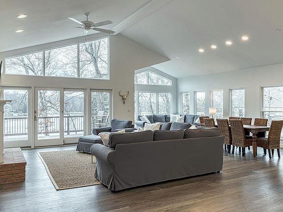 Our Chateau Charrette is a modern waterfront dream nestled on beautiful Lake Charrette at Innsbrook Resort. This luxury fully furnished lakeside getaway is set up for your maximum enjoyment complete with an array of watercraft, 2 outdoor fire pits, an expansive deck with plenty of seating, a private dock and your own sandy beach to enjoy with friends and family. Plus, this beautiful home will delight the entire family. The interior of this home has been completely renovated from top to bottom with modern finishes and touches throughout. On the main level there is an expansive living room with a fireplace complete with two comfortable seating areas showered in natural light overlooking the lake through a wall of windows. From there, the living room flows into an impressive eat-in-kitchen complete with an oversized L-shaped island and a large dining table with ample seating to manage gatherings for big meals and late-night conversations. You will also find a master bedroom with an ensuite bath plus two additional bedrooms and full size bathroom on this level for your convenience. As you make your way downstairs, you'll find a spacious recreation room complete with a wet bar and pool table that has direct walkout access to the backyard. Additionally on this level, there is a dedicated media room, a separate game room, two additional bedrooms and a full bathroom. All of this space will provide the perfect setting to allow your family and friends to do their own thing, whether it's reconnecting, watching movies, or simply playing games. This home is equipped with WiFi. This home is pet-friendly pet-friendly, two dog maximum, no cats. There is a $35 per night pet fee. Property is available for 30 days or more up to 3 months and may be available for shorter stays. Please inquire.