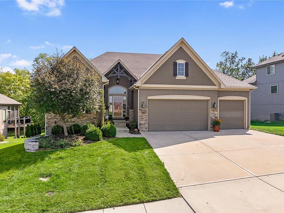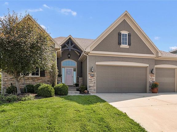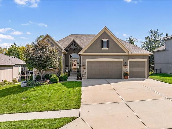 Lightly lived in 4 bedroom 3 bath ranch/reverse with walk-out basement home in Creekmoor new to the market! Home features open floor plan with large rooms, quality amenities, not to mention one of the few private wooded lots in Creekmoor. The large kitchen featuring oversized granite island, pantry and hardwood floors plus large breakfast room all with view of wooded backyard create a great place for family gatherings. Impressive great room with hardwood floors and fireplace is designed with full view of the wooded backyard. You'll fall in love with the spacious primary bedroom with multiple windows to view the back yard, bath and oversized walk-in closet. The large bath has double sinks, tub and oversized tiled shower. Also located on the main level you will find a second bedroom with bath, conveniently located laundry room and tucked away office area off the kitchen. Impressive staircase leads to walk-out lower level which boast huge family room, with wet bar and 2 additional bedrooms and bath. Screened porch with fireplace off dining area and great room is the perfect place for morning coffee or a place to unwind after a busy day. The tranquility of the wooded lot with trickling stream is a rare find! Wrought-iron look fenced back yard is perfect for your family pets. Creekmoor's amenities offer something for everyone. Play a round of golf on the Championship Creekmoor Golf course; go fishing in Creekmoor's private stocked lake; workout at the fitness center; swim in one of the two pools; play a game of tennis or pickle ball; bike, walk or run the trails; join one of the book clubs, card clubs or bible study groups; catch breakfast, lunch or dinner at Tavern on the Moor or cheer the Chief's to a victory at Tavern on the Moor Bar & Grill. Now is a great time to make 1106 Lakecrest your new home! Take a look before it's gone.