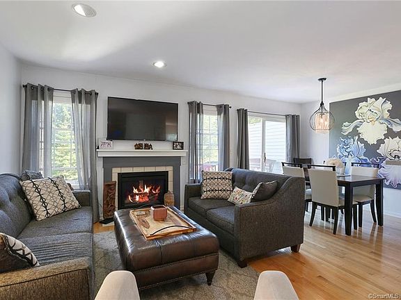 Make sure to stop by this beautiful, well maintained townhouse. Great commute location close to X2 on 84. Step into the bright open concept living area which features hardwood floors and gas fireplace. Half bath off the living area is great for guests. Dining room has sliders to the deck overlooking a beautifully landscaped backyard. This area opens directly onto the large kitchen with white cabinets and stainless appliances. If you don't want to have your morning coffee on the private deck use the breakfast nook by the bay window in the kitchen. There is also a pantry which will hold all your must have grocery items. On your way upstairs you will stop on the landing with enough room to house your work station. The high ceiling and massive window allows for plenty of light. On the upper level you will find hardwood floors and loads of closet space. The two large bedrooms have plenty of space for your belongings. The master also opens to the full bath. Lower level includes a bonus room opening onto the patio which has many useful purposes. Make it an office, den, or playroom. Sliders add natural light to this area. Lower level also includes laundry area and interior access to garage. Complex amenities include many visitor parking spaces, inground pool, tot playground, clubhouse and exercise room. Make sure this unit is on your list to see!