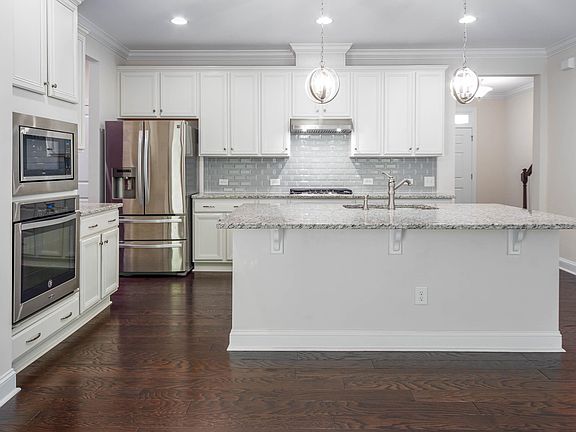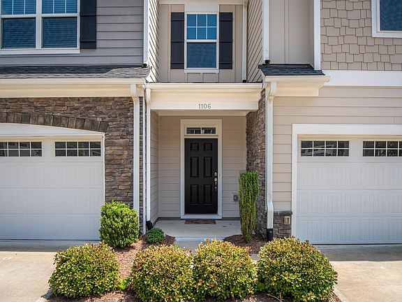 Immaculate and move-in ready 3 bedroom townhouse with 2 car garage in highly desirable Silver Grove. Gorgeous and well-designed kitchen with huge island, lots of storage space, including a pantry, and vented hood over gas cook top. Highly desirable appliances and cabinetry storage features. Kitchen flows into living area with views of beautiful wooded areas. Screened porch with views of wooded area. Large main bedroom with large walk-in closet. Upgraded storage in entry area from the garage to townhouse and lovely covered front door entry. Walking path nearby. Washer and dryer stay. Refrigerator stays. Restaurants, shopping, and RDU International Airport nearby.