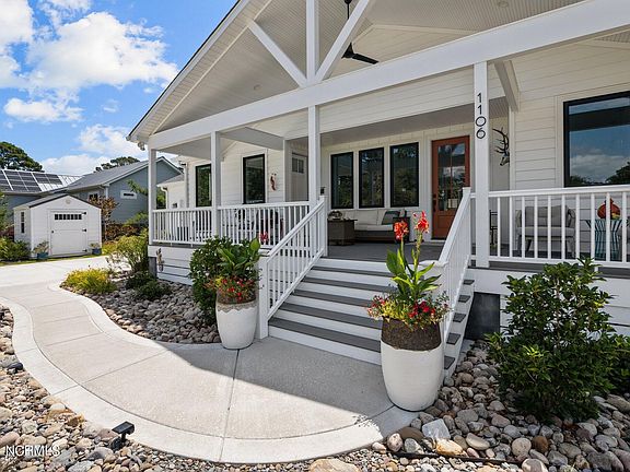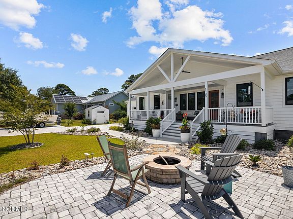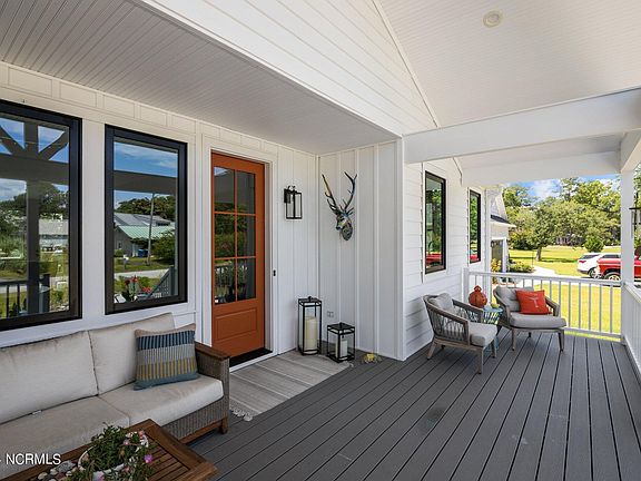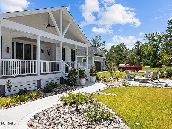 The primary bedroom is a sanctuary with remote-controlled shades, a luxurious walk-in shower, dual vanity, and a generously sized walk-in closet. For guests, the second bedroom boasts its own private entry, an ensuite bathroom, and a cozy coffee bar area equipped with a fridge and microwave, ensuring comfort and privacy. Another standout feature of this home is the large laundry room with a drop zone space along a ship lap wall, making chores a breeze. Additionally, a dedicated mechanical room houses the water softener, water heater, and provides extra storage. Step outside to discover the perfect spots for gathering and relaxation. The large front porch invites you to enjoy morning coffee and evening chats with neighbors. A fire pit area promises cozy gatherings under the stars, while the back deck provides an ideal space for grilling and al fresco dining. Located close to restaurants, stores, the waterfront and activities, this property not only offers a serene living environment but also convenient access to everything the Village of Oriental has to offer. Don't miss out on this opportunity to own a meticulously designed home that perfectly blends coastal charm with modern comfort. Schedule your tour today and envision yourself living the Oriental lifestyle in this exceptional residence!