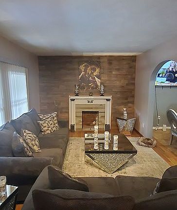 Wood floors in living room, Dining room, Kitchen. Carpet in 5 bedrooms, hall way,and steps. Entry way wood flooring. Custom designed bathrooms. Master bedroom has shower and French doors leading out to a huge deck. Backyard is beautiful with a swimming pool and fenced in. Basement is unfinished. Large front porch with a beautiful front yard. New plumbing throughout the house. New wiring throughout the house. New fuse box.