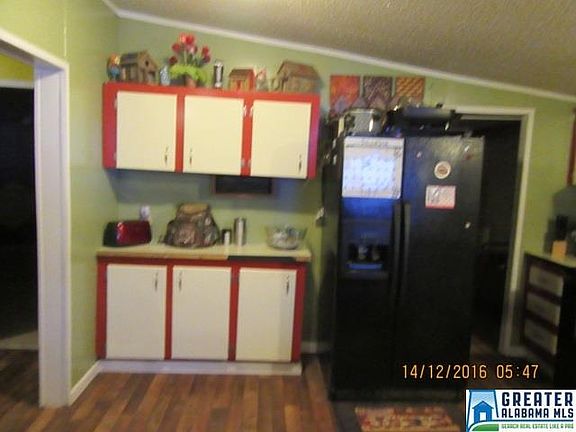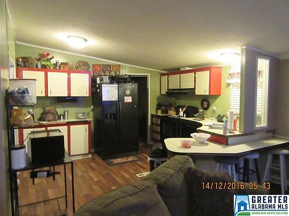 Very Nice double wide manufactured home on a firm foundation with an open floor plan, living room area with gas burning fireplace, dining area, kitchen with breakfast bar, stove, refrigerator, dishwasher, laundry room off kitchen, nice vinyl wood look flooring in great room, kitchen and dining room area. 3 bedrooms, 2 baths, large master bedroom with master-bath, walk-in closet, large stall shower, double vanities, wooden deck outback, front porch, nice covered storage building all of this sitting on 6.83 acres surrounded by a creek that borders the property. Very private no close neighbors that you can see.